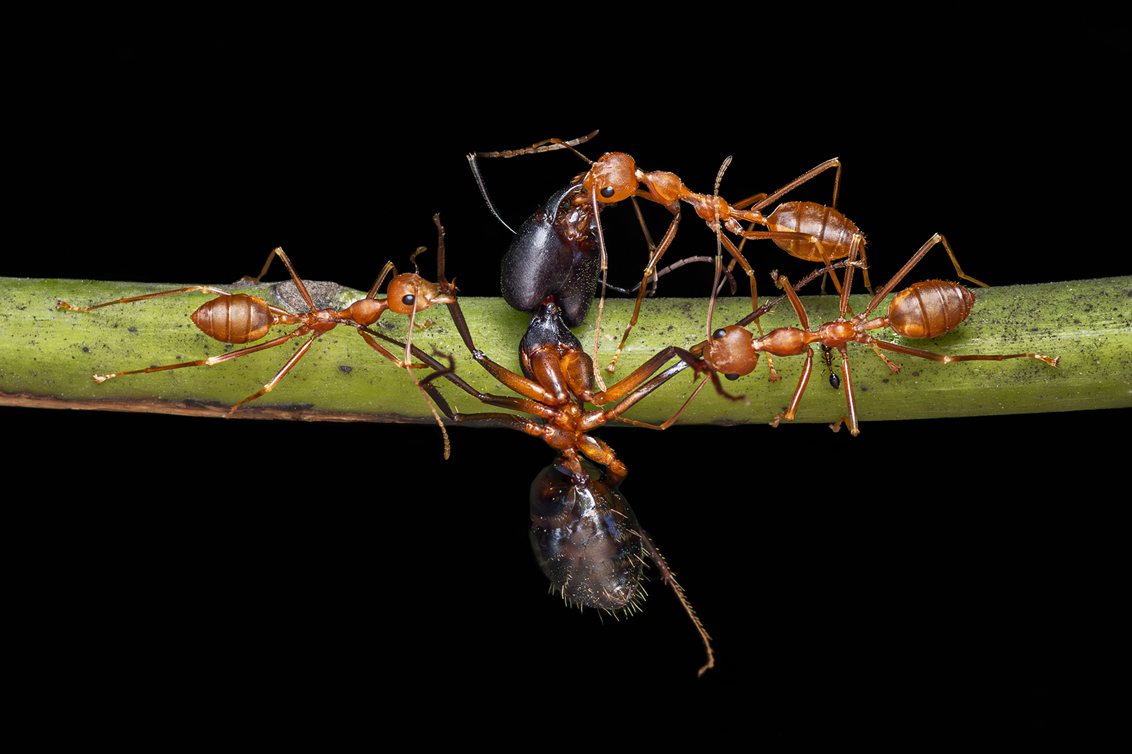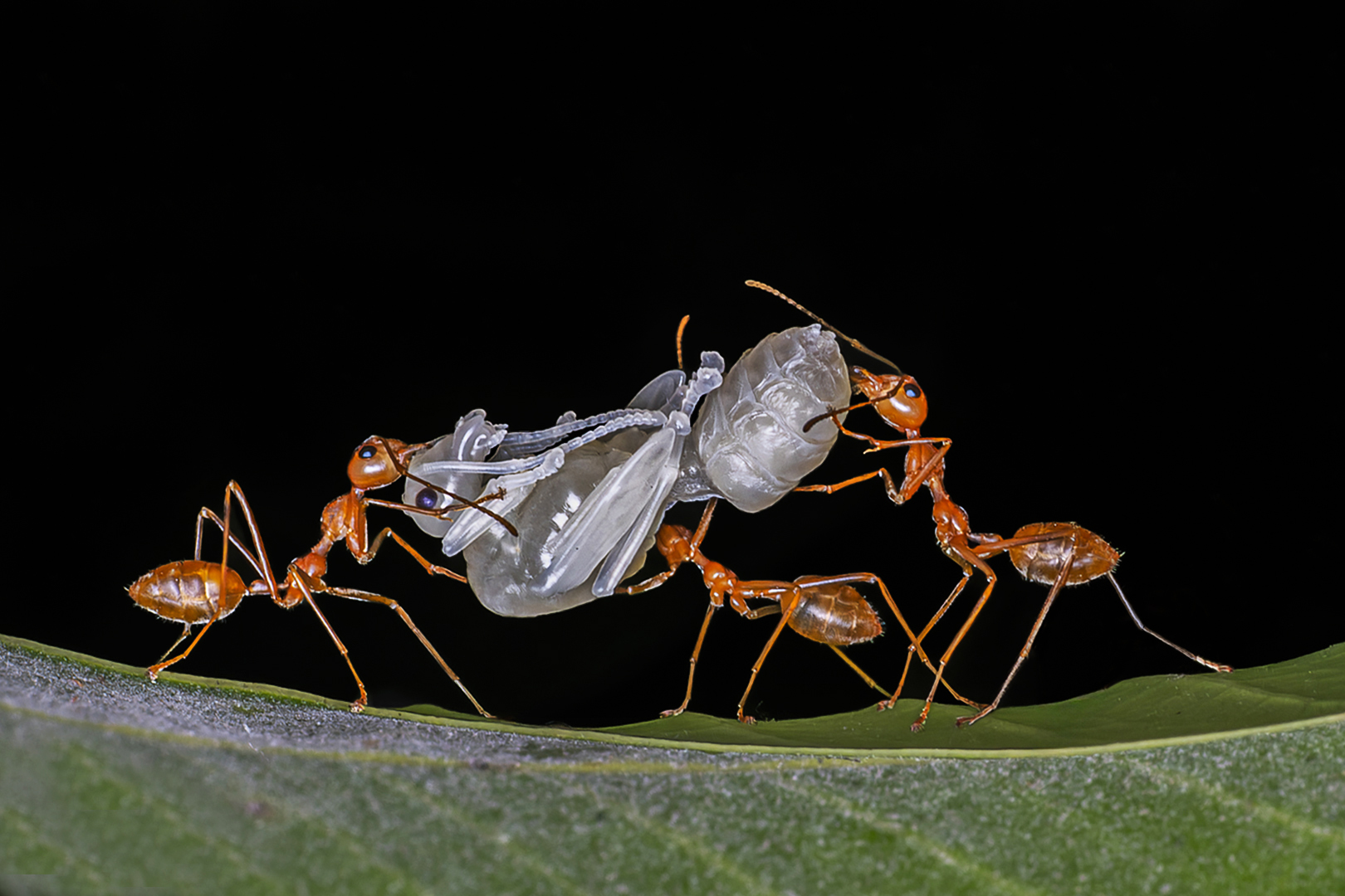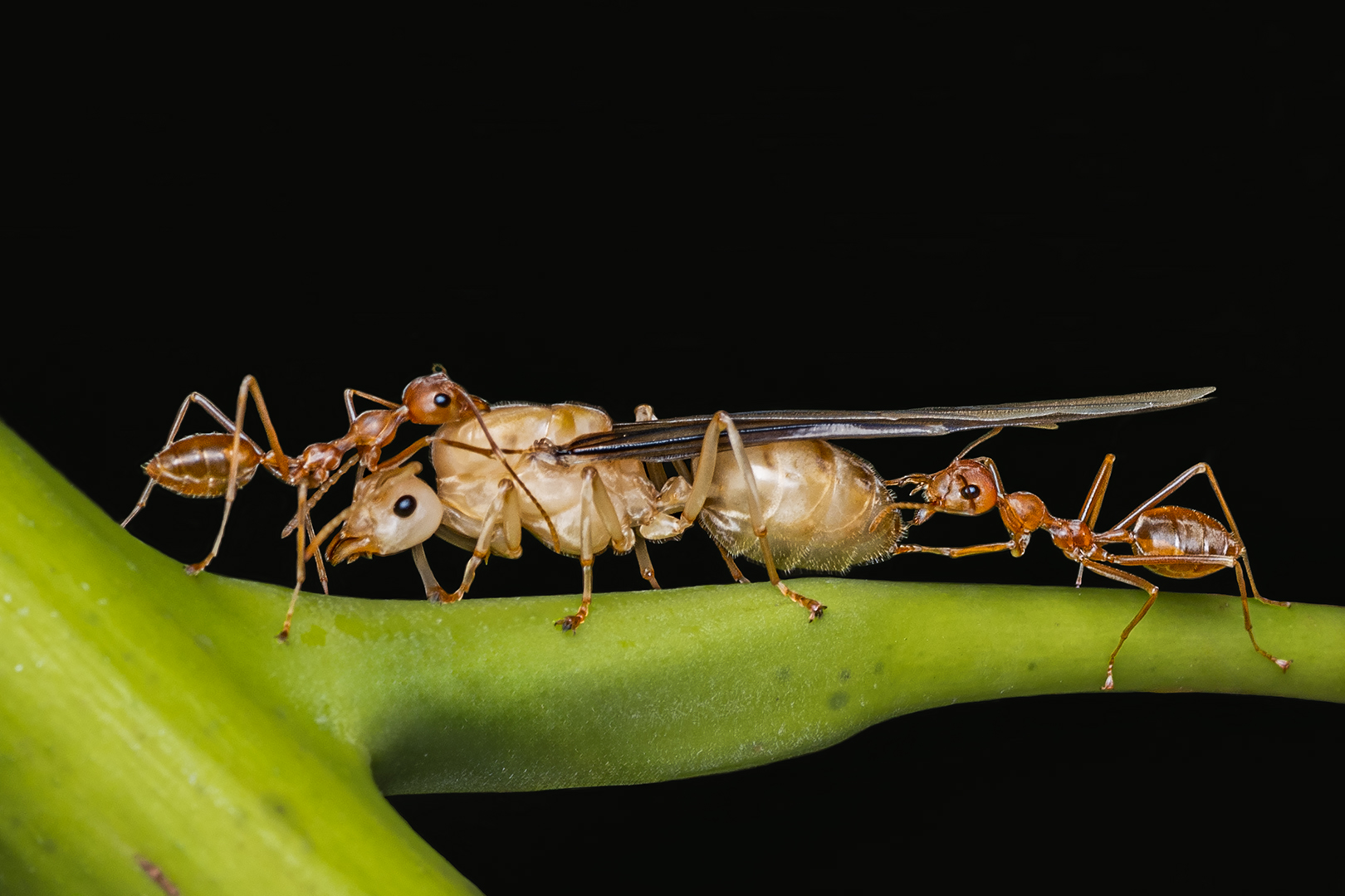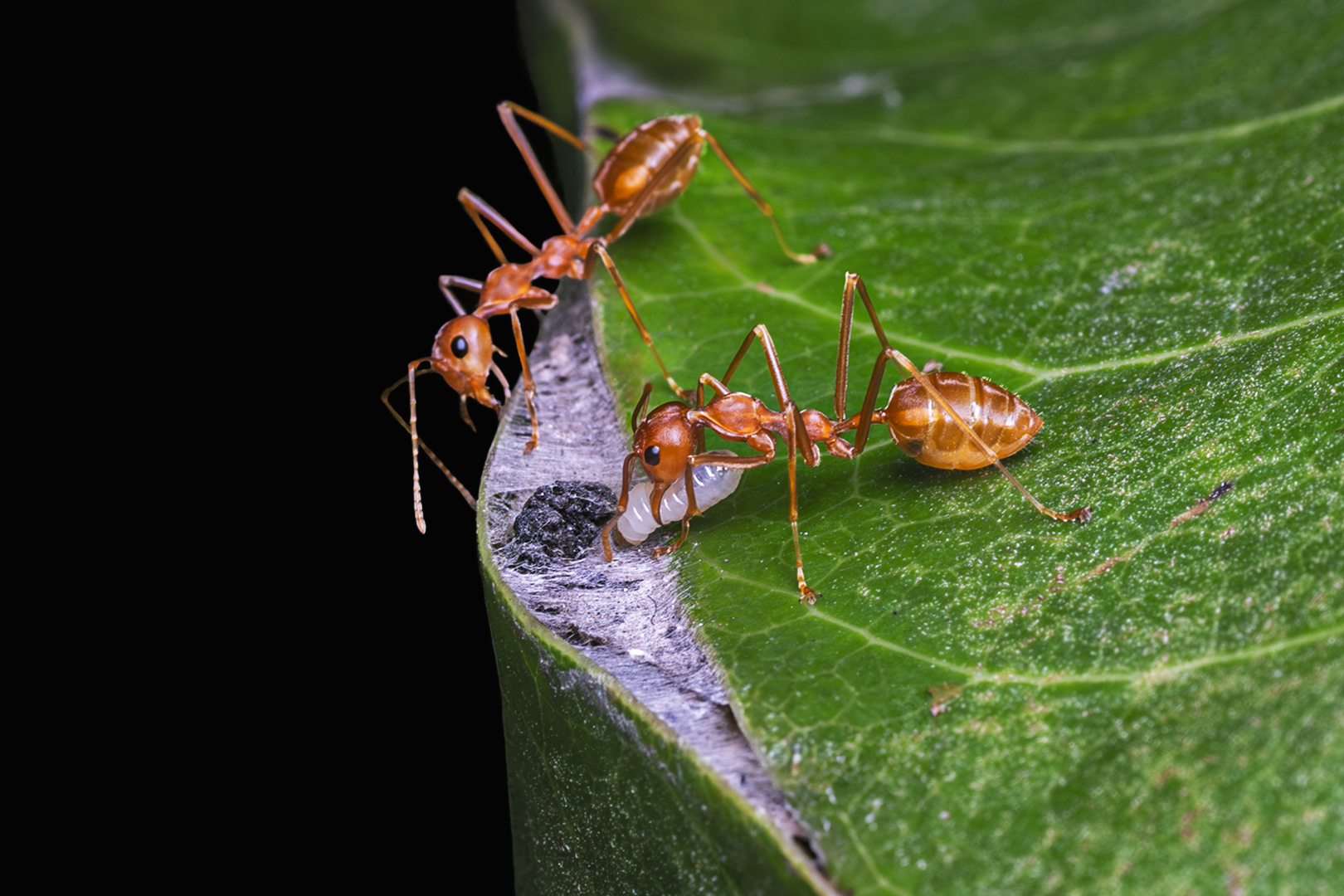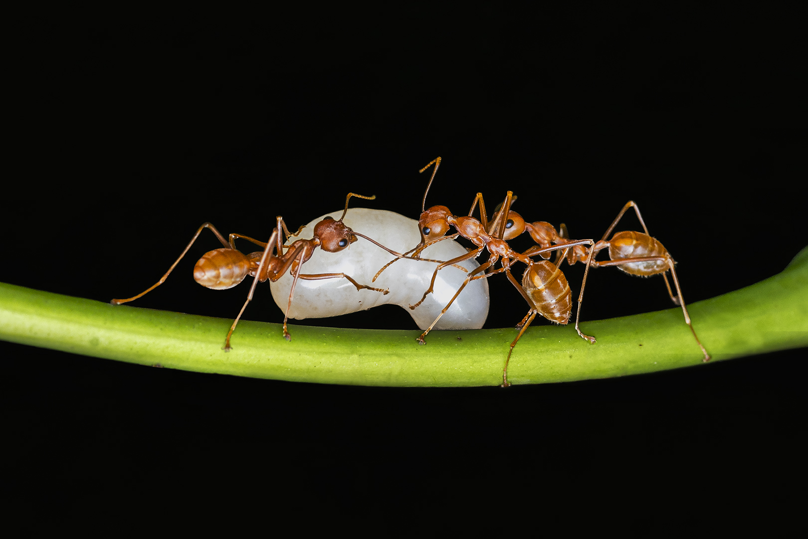 The series shows the works of Female worker Weaver Ants. Female Worker Weaver Ants are the non-reproductive females that forms the vast majority of the colony. Their role towards raising New Generation includes Nest building with Silk from their Larva, Tending Larva, Collecting Food, Tending Pupa and Caring the Queen.